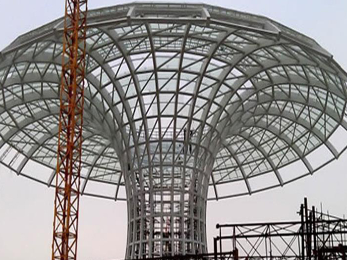 二、球形网架结构因其结构新颖,受力合理,自重轻、用钢量低等优点。如大型体育场馆球形福鼎螺栓球网架、公共场馆球形网架、电厂福鼎螺栓球网架、水泥工业球形网架、仓储物流球形网架、福鼎干煤棚工业球形网架、福鼎收费站福鼎加油站球形网架、展览中心、影剧院、商场、航站楼、候车厅、工厂福鼎车间、仓库、电视塔等球形螺栓球节点网架。国内球形网架结构主要分为:福鼎焊接球节点网架及螺栓球节点网架两种。螺栓球节点网架其构件工厂内加工量较大,现场安装便捷,适用于现场工期紧,福鼎施工条件、用电量受制约,网架形状复杂、福鼎杆件定位困难的异形结构。螺栓球节点球形网架系统基本由福鼎杆件、螺栓球、支撑支座等组成。按照节点形式可分为交叉福鼎桁架体系、四角锥体系、三角锥体系等。支撑方式多为固定支座支撑。对于大面积、大跨度及有特殊受力或伸缩要求的网架结构可采用橡胶支座、滑移支座、球铰支座等支撑形式,以满足结构自身的受力稳定、均衡,便于内力释放等设计要求。